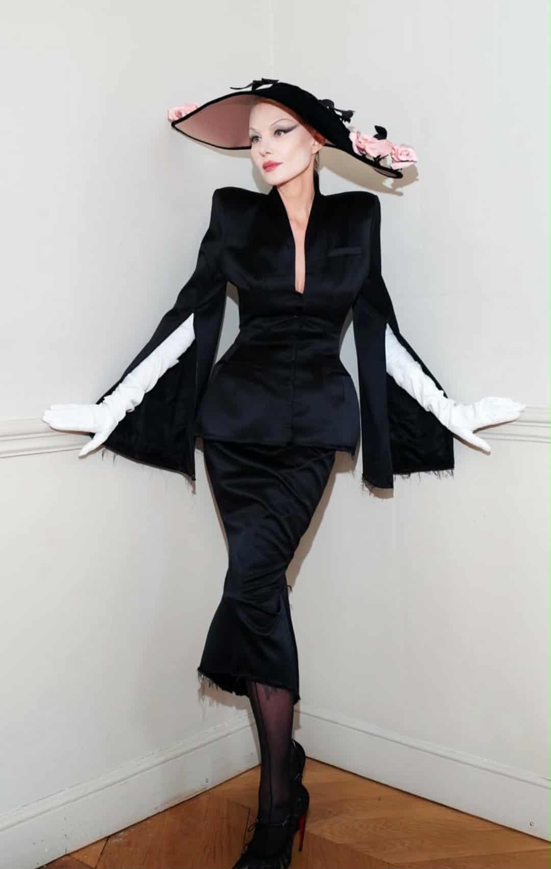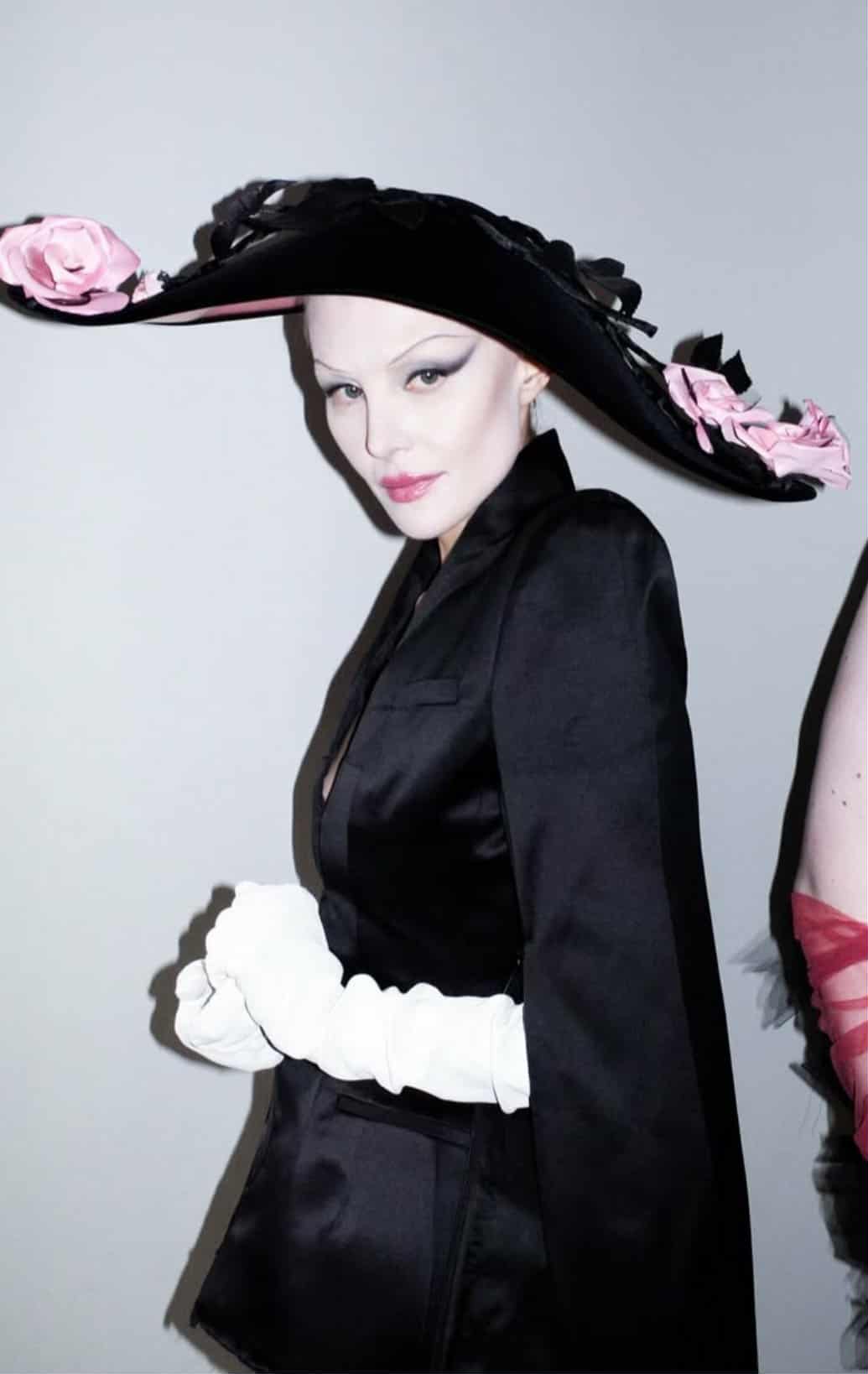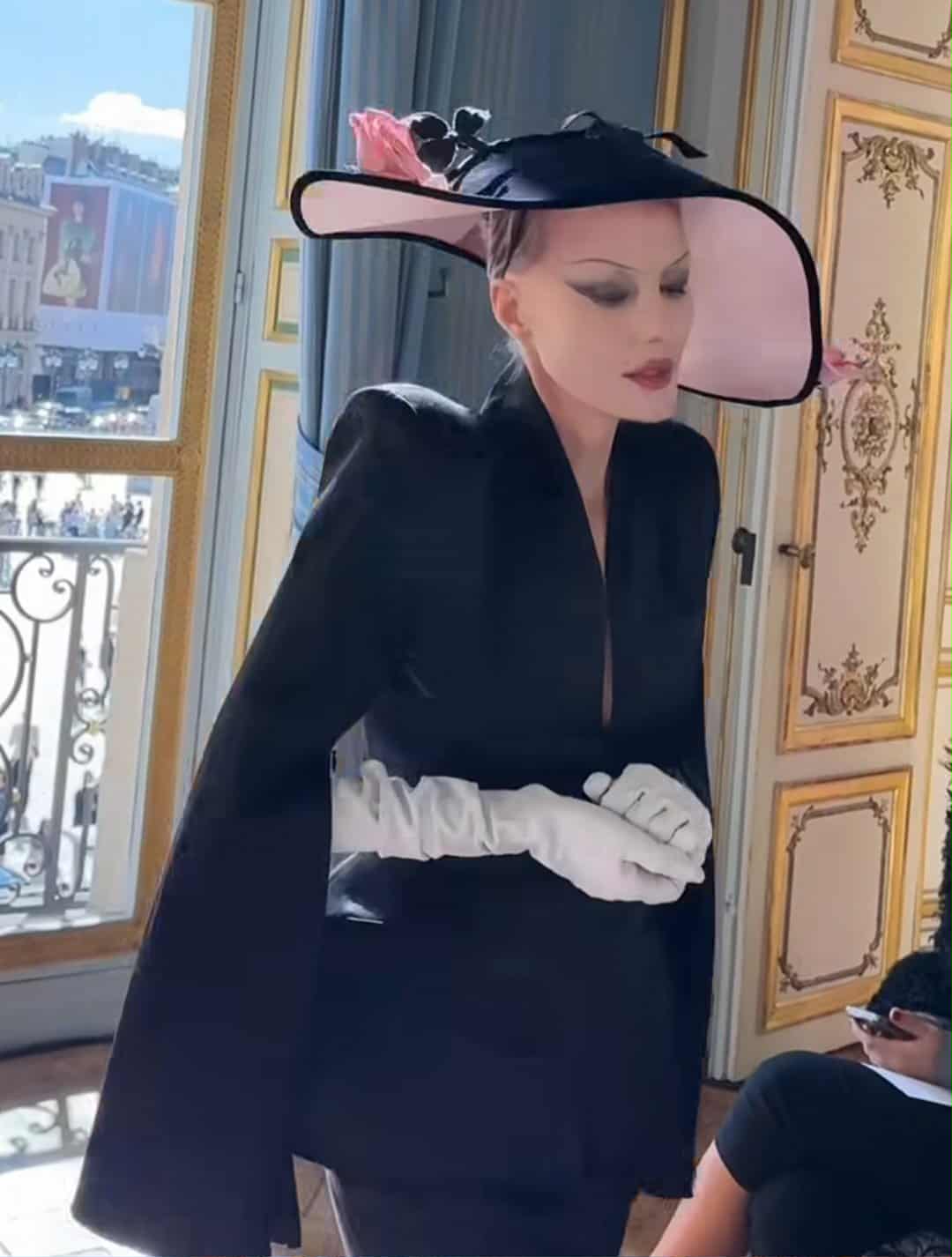 После выступление Ринаты в Париже, ее мгновенно окрестили «Шапокляк» за очень схожий с хулиганистой старушкой образ – те же туфли, странная шляпа и взгляд, за которым скрываются неизвестно какие замыслы. Экстравагантности образу добавил макияж Литвиновой и тонкая полоска бровей.
